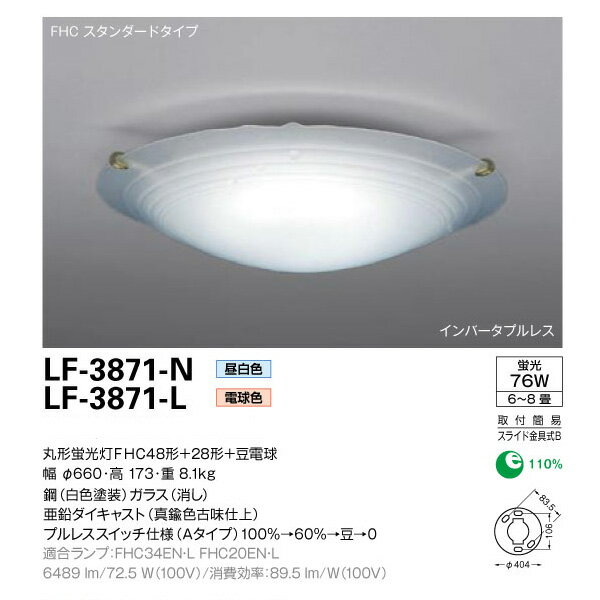 【ポイント2倍】山田照明 シーリング(蛍光灯) シーリングライト 丸形蛍光灯 LF-3871-N【代引不可】 価格: 44,340円 レビュー評価: 0.0 レビュー数:0 山田照明 シーリングライト 丸形蛍光灯 FHC48形+28形+豆電球 FHC34EN-L/FHC20EN-L LF-3871-N ■光源仕様:丸形蛍光灯 FHC48形+28形+豆電球 ■適合ランプ:FHC34EN-L/FHC20EN-L ■寸法:幅φ660高173mm ■重量:8.1 ■材質仕上:鋼(白色塗装)/ガラス(消し)/亜鉛ダイキャスト(真鍮色古味仕上) ■適用畳数下限:6 ■適用畳数上限:8 ■取付方法:取付簡易型 ■省エネ達成率:110 ■備考1:スライド金具式B ■総W数:76 ■ランプ種類:丸型蛍光灯(FHC) ■ランプ本数:2 ■光源色(蛍光灯):昼白色 ■リモコン:別売 ■ Supported by 楽天ウェブサービス |